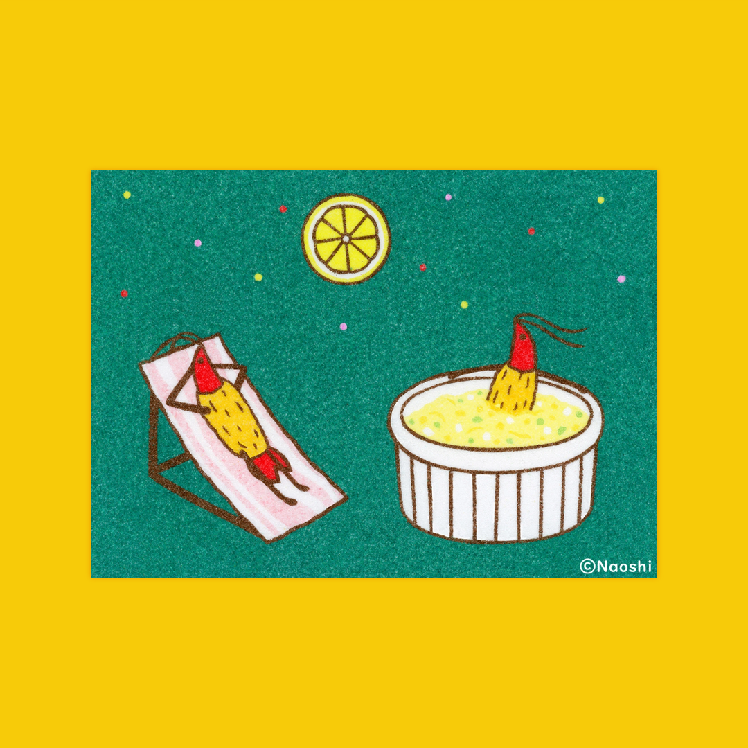 This is a reproduction of Naoshi's original SUNAE (sand art) piece "Full Moon Lemon" and features the soft, sandy, original texture.