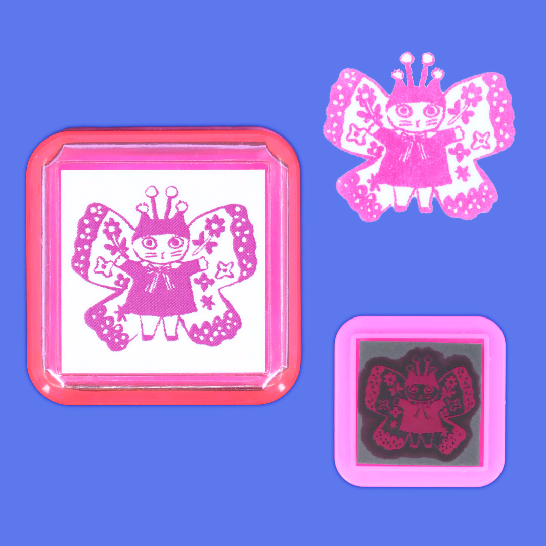 This portable push-button, pre-inked stamp is perfect for decorating your planner, notebook, cards, or sticky notes. This magical fairy/butterfly hybrid cat and bright pink ink will add so much personality to whatever you choose to stamp!