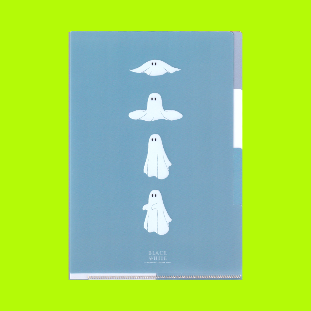 This 3 pocket folder is perfect for organizing receipts, loose notes, and other small items. Made of plastic sheets and featuring a total of 5 ghosts, rest assured that any items inside will be well protected. The cover of the folder is transparent, so anything you put in the first pocket is easily referenced. For more privacy, the other dividers are opaque, ensuring your secrets are safe.