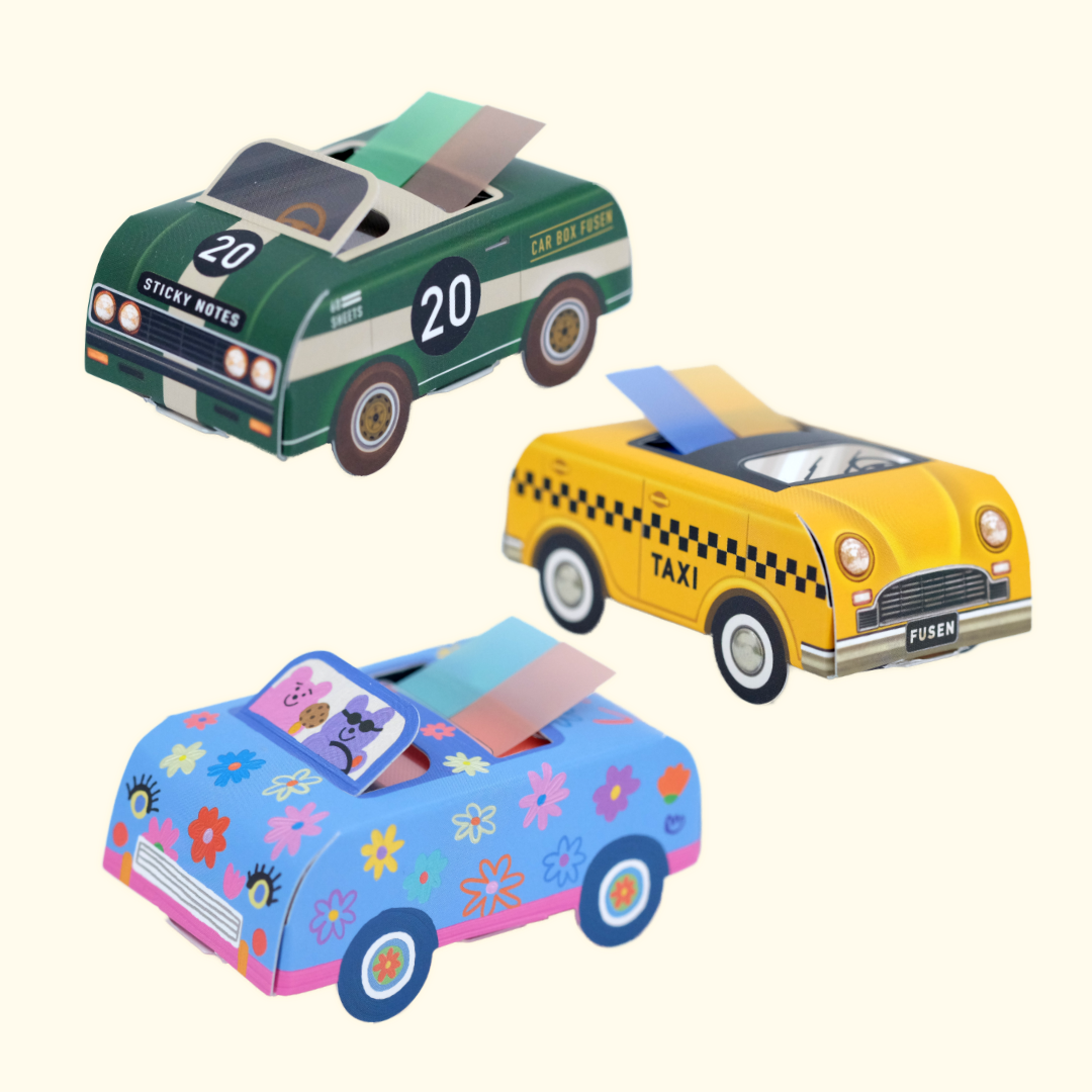 Car size 2.1cm x 4cm x 7.2cm | Sticky note size 1.2cm x 4cm | 60 sheets - 30 of each color