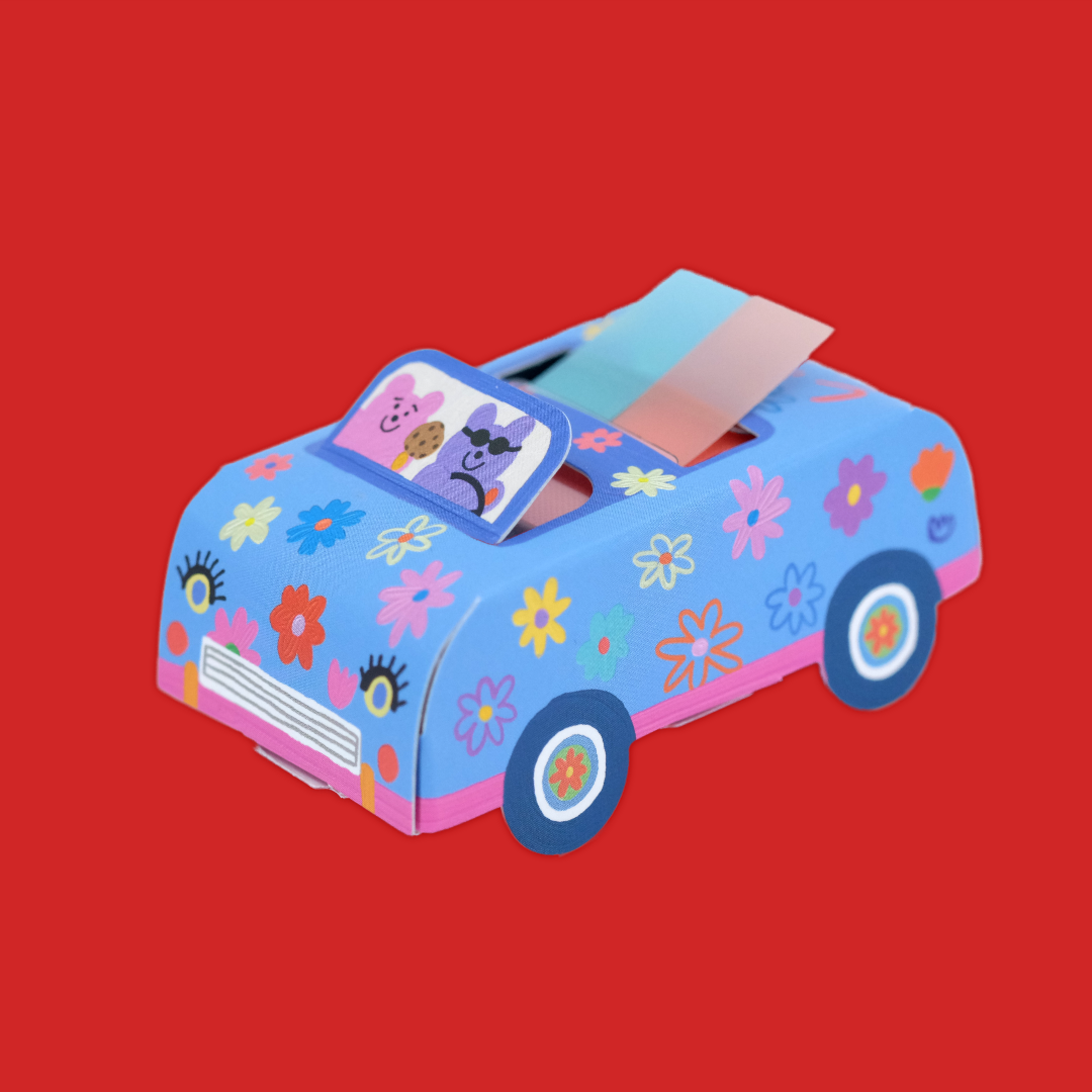 Nothing says kute like two koalas driving a kar. Nothing says konvenient like this pop-up kar kase of sticky notes.