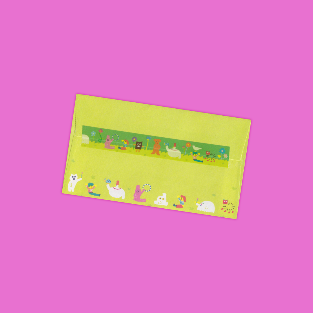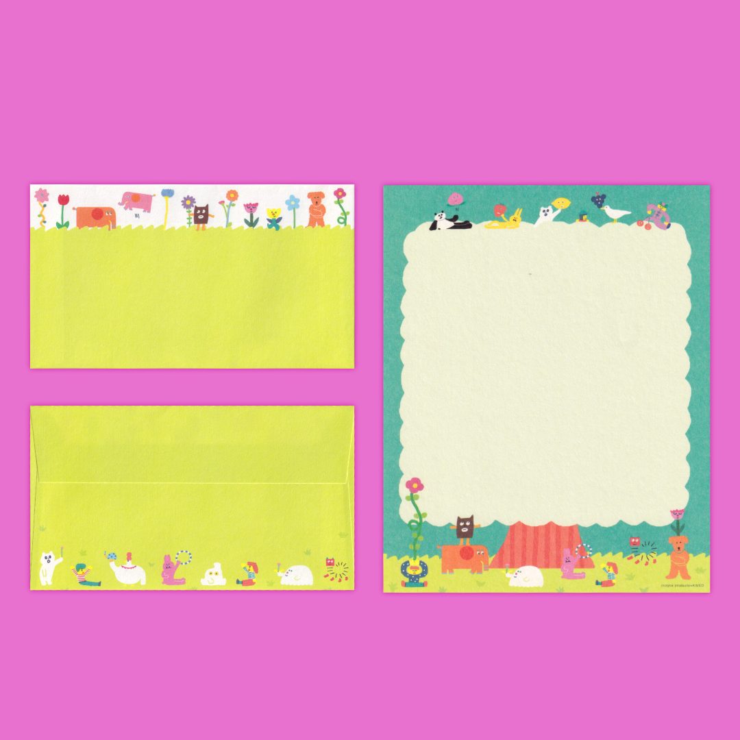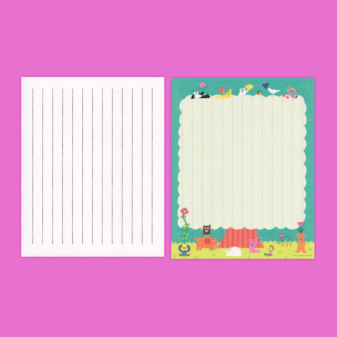 This stationery set designed by AIUEO features colorful creatures enjoying a sunny day. Made by cozyca products in Japan, this set is made from Mino washi paper, which is known for its delicate looks but is strong and durable nature. With 12 sheets of paper and 4 envelopes, this letter set is perfect for long life updates and quick letters alike.