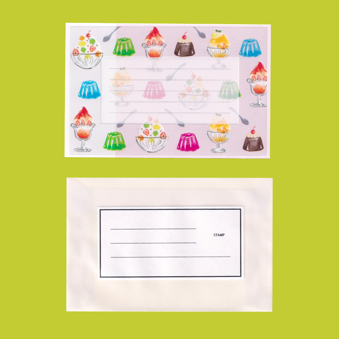 Send a sweet letter with this sweet letter set. The letterheads and envelopes are made of translucent tracing paper, so you can see the colorful desserts through the envelope - how irresistible! The envelope comes with an address label ready to address and mail to a sweetie.